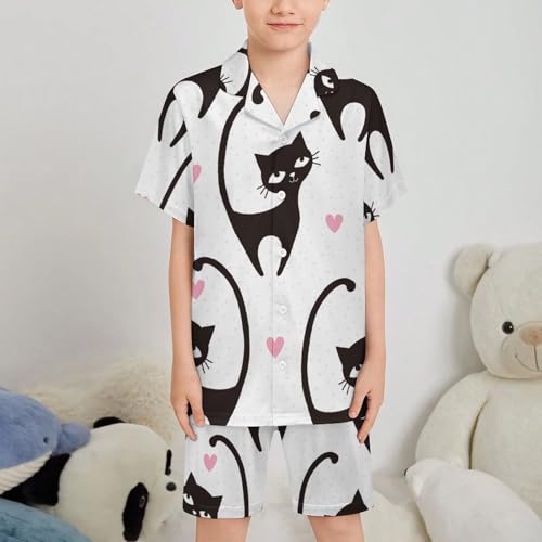 Love Black CatChildren's Pajama Sets, Button Down Collar, Two Piece Pajama Sets6-7Y 7
