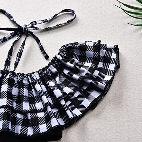 Baby Toddler Girl Swimsuit Plaid Ruffle Sling Swimwear+Shorts+Headband 3Pcs Bathing Suits for 3M-4T Kids Girl 4