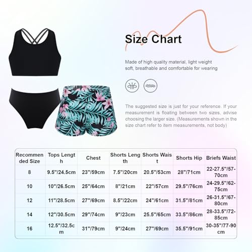 Hansber Kids Girls Three Pieces Swimwear Sleeveless Round Neck Crop Top with Briefs Swim Trunks Set 6