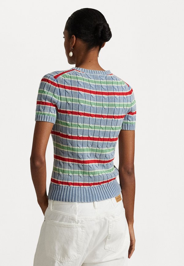STRIPED CABLE-KNIT SHORT-SLEEVE SWEATER - Print T-shirt 2