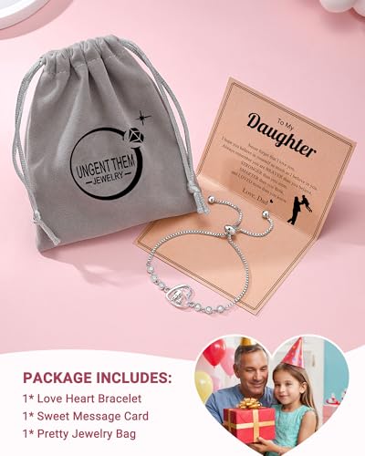 UNGENT THEM Love You Forever Heart Girls Bracelet Daughter Gifts From Dad Birthday Christmas Valentines 2