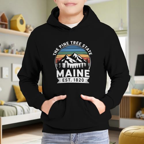 Kids Maine The Pine Tree State Boys Girls Lightweight Kangaroo Pocket Fleece Hoodies 7
