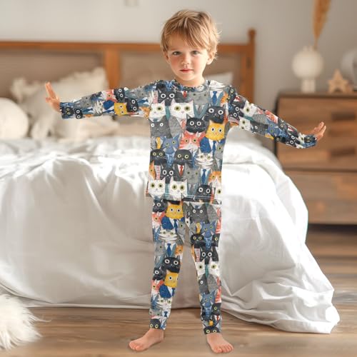 ALAZA Cat Animal Puppy Watercolor Pajamas Long Sleeve Sleepwear 2-Piece Pajama Set 1