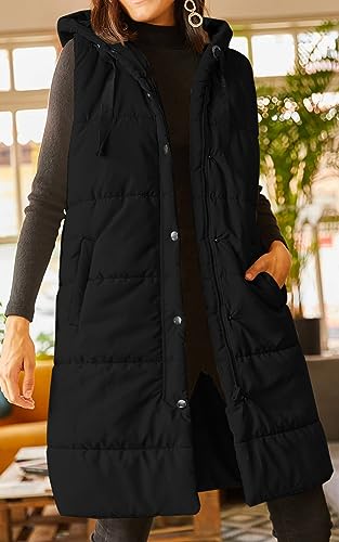 Grlasen Women's Long Quilted Puffer Vest Sleeveless Hooded Button Down Padded Coats Jacket Outerwear with Pockets 2