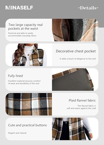 More information about Mina Self 2025 Women's Fall Flannel Plaid Vest Tops - Sleeveless Long Single Breasted Casual Fashion Jackets with Pockets