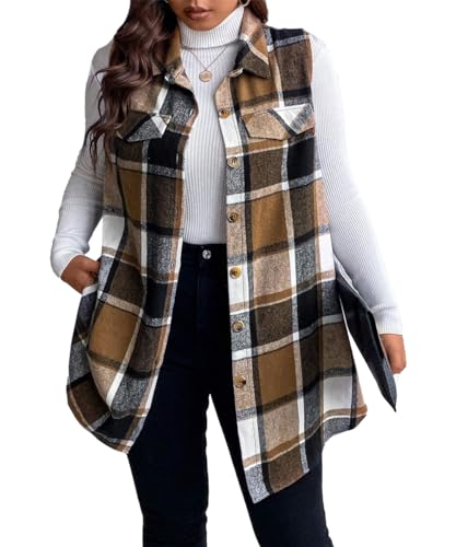 Mina Self 2025 Women's Fall Flannel Plaid Vest Tops - Sleeveless Long Single Breasted Casual Fashion Jackets with Pockets 4