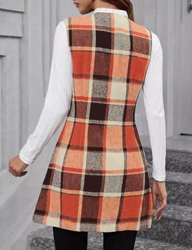 IDEALSANXUN Long Plaid Vest for Women Fall Winter Trench Coat Sleeveless Blazer Jacket Cardigan Wool Vest Top Waistcoat 4