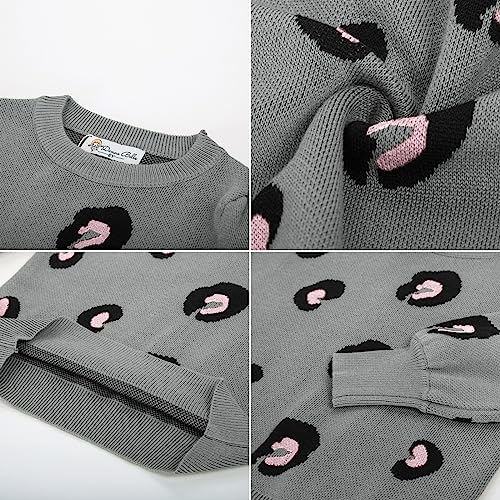 Danna Belle Girls Fall Long Sleeve Crew Neck Leopard Pullover Christmas Sweaters 5-12Years 4
