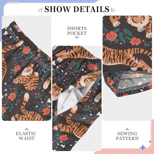 Boys' Pants Tiger Flower Animal Long Bottoms Jogger Pants Elastic Waist Trousers with Pockets S-XL 4