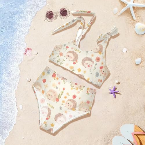 Cute Watercolor Hedgehogs Girls 2 Piece Kids Bikini Set Scoop Neck Bathing Suit Swimwear Adjustable Strap 5