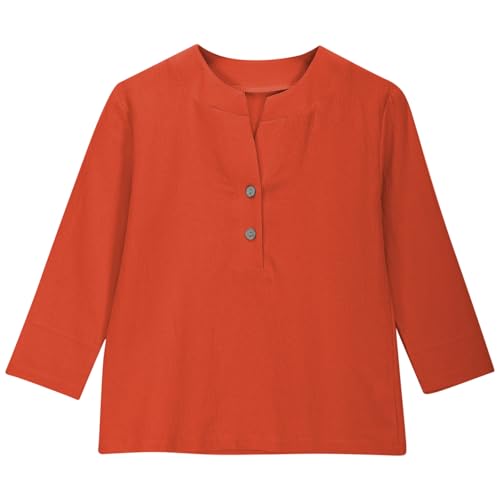 Girls Half Button Linen Shirts Summer Loose Comfy Cotton Long Sleeve Blouses Teens Lightweight Preppy V Neck Tops 7