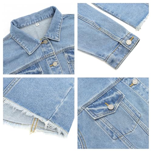 More information about Women's Distressed Denim Jacket Lightweight Cropped Jean Jacket with Raw Hem Perfect Over Dresses & Tanks