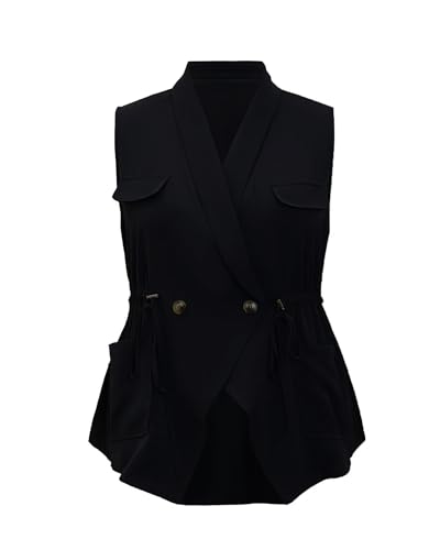 • 【Features】: Sleeveless, notched lapels, solid color, casual, loose fit style, drawstring, 2 Side Pockets, drop shoulder vest with ruffle hem. Open front work office vest is elegant and trendy style but never out of fashion.