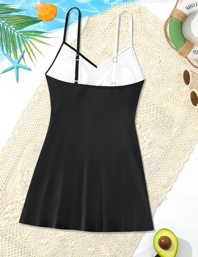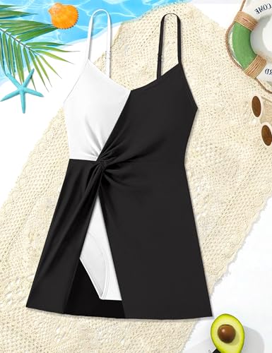 • 🩱【Unique Design】Girls Bathing suit features unique color block, V neck and twist design. One piece swimdress has a side slit at the A line hem, which has good coverage. The vibrant colors and stylish design make it stand out by the pool or at the beach. The added padding gives extra support, adjustable spaghetti straps, allowing girls to enjoy their time by the ocean without any worries.