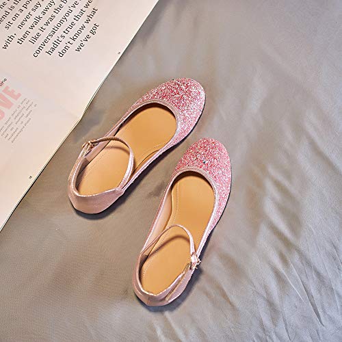 • ✔️Shoe description: The girl's Mary Jane Flats shoes decorated with Glittering sequins, The breathable lining and inner sole material keep kids feet always dry and relaxed. The heel is inlaid with rhinestones and ankle closures, as well as rhinestone ornaments to make the whole shoe more beautiful and make your little princess more beautiful after wearing it. Comfortable low top and soft cushioned footbed features are great for foot development.