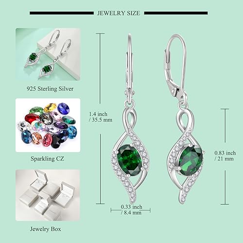 Starchenie Infinity Dangle Drop Earrings 925 Sterling Silver Oval Birthstones Leverback Earrings Jewelry Gift for Women 5