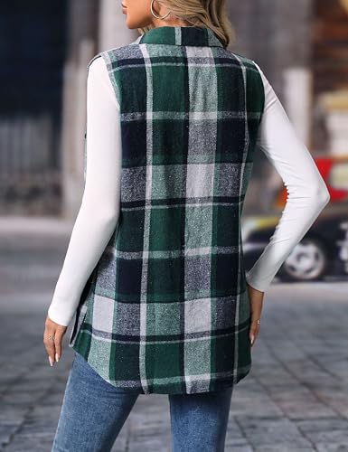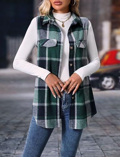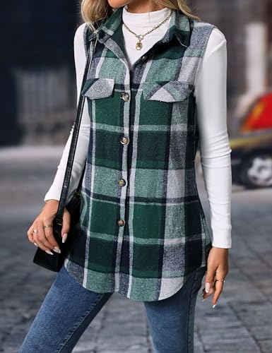Mansy Womens Fall Flannel Plaid Outerwear Vest Casual Lapels Button Down Shirt Fashion Sleeveless Jacket Cardigan Coat