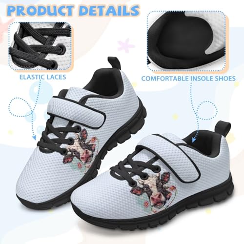 Cow Print Running Shoes for Boys Girls Tennis Sneakers Non Slip Athletic Walking Strap Shoes 6