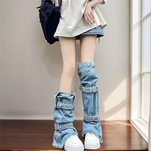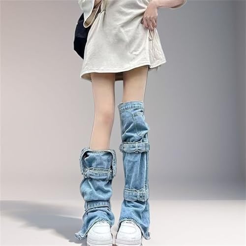 • Edgy Cyber Goth Design: These goth leg warmers combine denim textures with buckle accents for a punk aesthetic. The blue leg warmers feature a flared cut, ideal for y2k goth or steampunk outfits